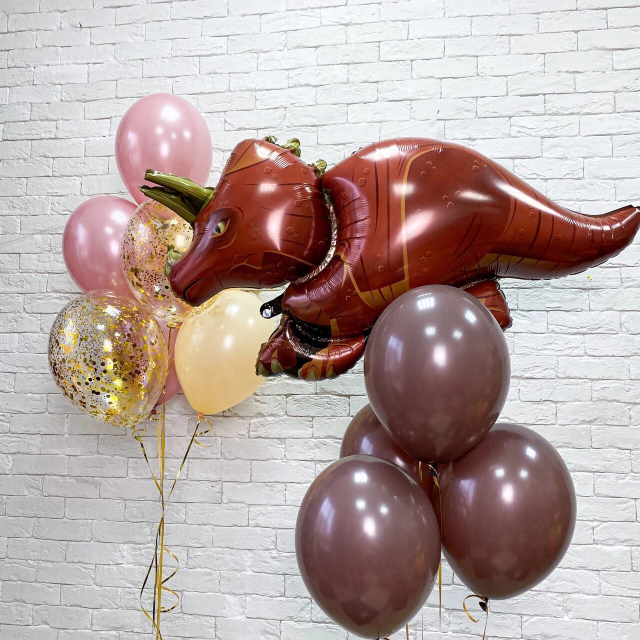 - Каскад из шаров (1 фигурный динозавр и 4 латексных шара пастель)