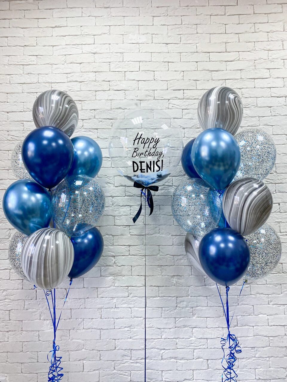 - 2 фонтана по 10 шаров (4 латексных шара хром, 3 латексных шара агат, 3 латексных шара с конфетти)