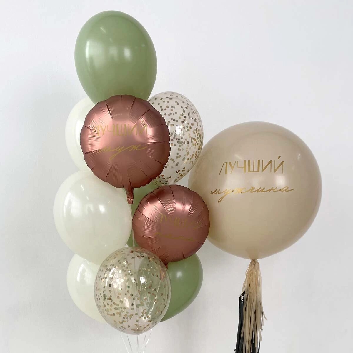 - Фонтан из шаров (2 фольгированных круга с индивидуальными надписями, 2 латексных шара с конфетти, 6 шаров однотонных пастель)