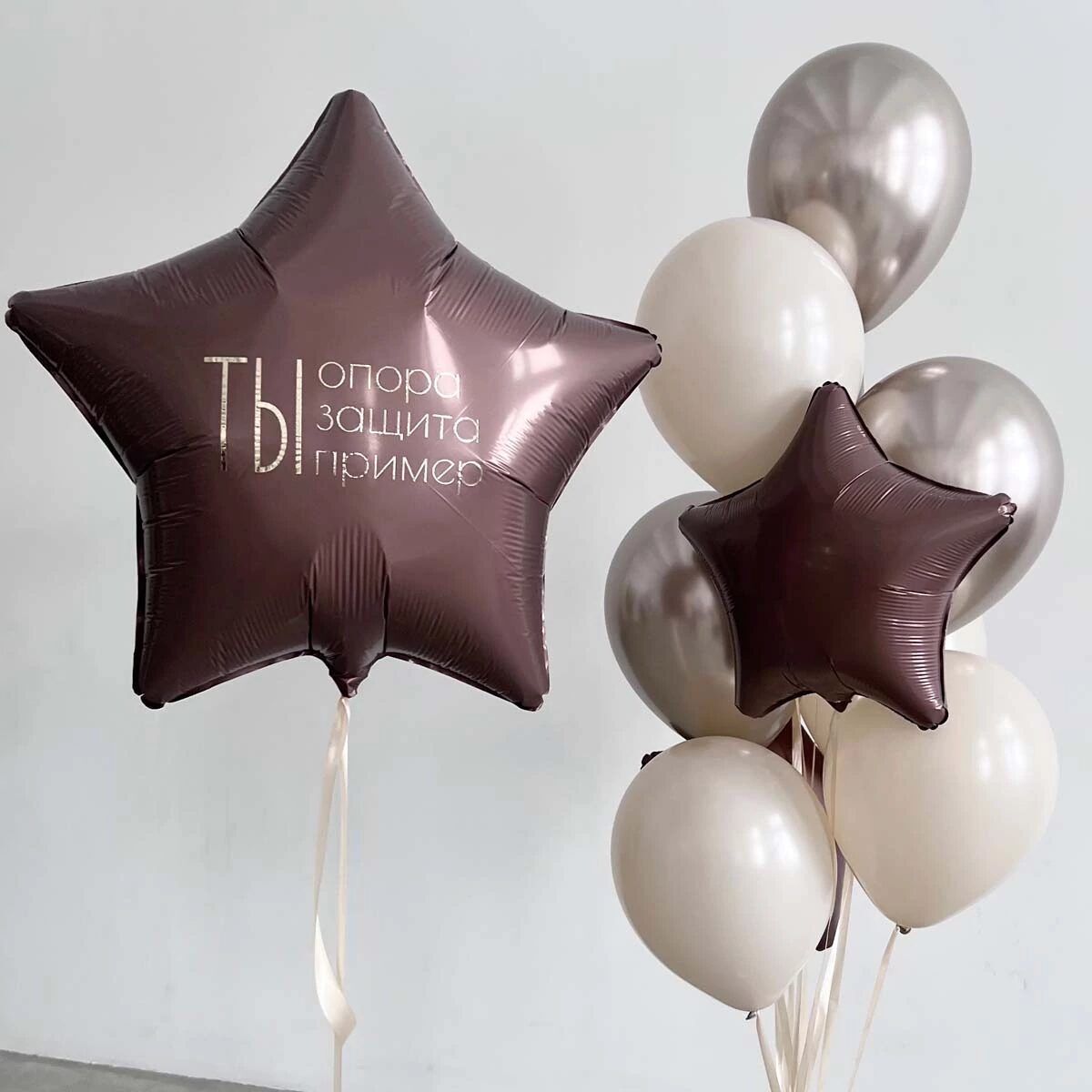 - Фонтан из шаров (3 фольгированных звезды, 3 латексных шара хром, 3 шара однотонных пастель)