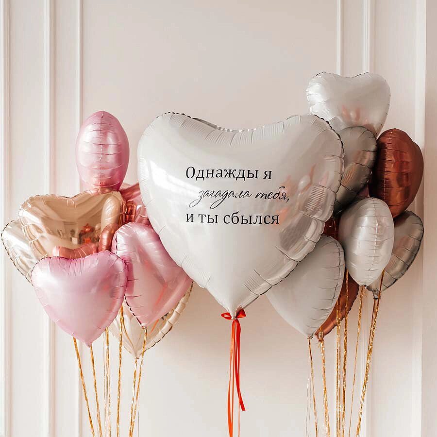 - 2 фонтана по 7 шаров с золотым дождиком (всего 14 сердец)