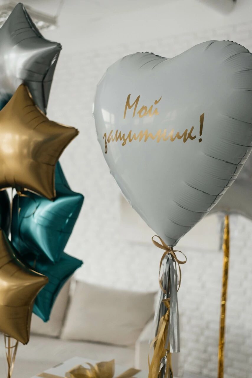 - Большое фольгированное сердце с лентой тассел и индивидуальной надписью