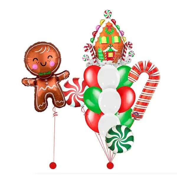 - 9 латексных пастельных шаров (красный, зеленый, белый)