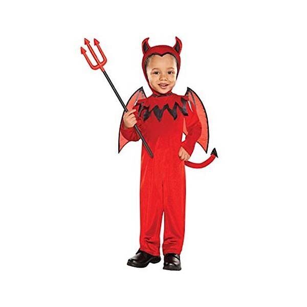 Умиляемся маленькому дьяволенку! Комбинезон с капюшоном-рожками и крыльями для мальчика 4-6 лет можно купить в интернет-магазине или розничных магазинах. Трезубец в набор не входит. Длина костюма 85 см