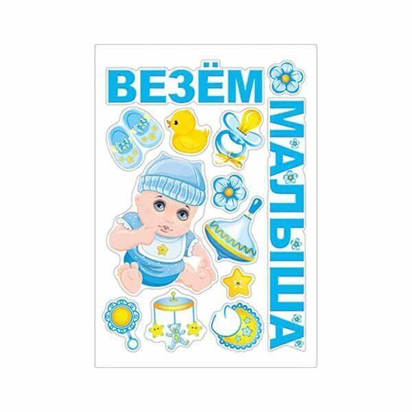 Пинетки, карусели, уточки, юла и множество других вещей, которые приходят в дом вместе с малышом! Поздравляем с прибавлением! Украсить автомобиль на выписку из роддома поможет набор магнитов ВЕЗЕМ МАЛЫША. На листе размером 29,5х43см расположены 13 элементов. Магниты прочно крепятся на любую металлическую поверхность, легко снимаются и не оставляют следов.