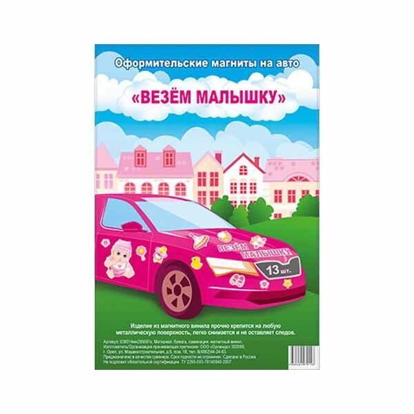 Пинетки, карусели, уточки, юла и множество других вещей, которые приходят в дом вместе с малышом! Поздравляем с прибавлением! Украсить автомобиль на выписку из роддома поможет набор магнитов ВЕЗЕМ МАЛЫШКУ. На листе размером 29,5х43см расположены 13 элементов. Магниты прочно крепятся на любую металлическую поверхность, легко снимаются и не оставляют следов.