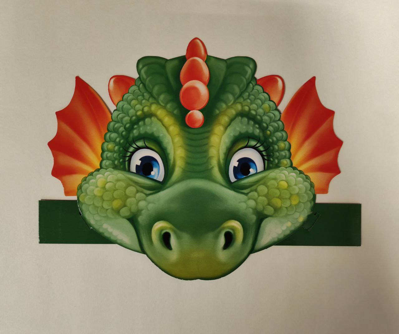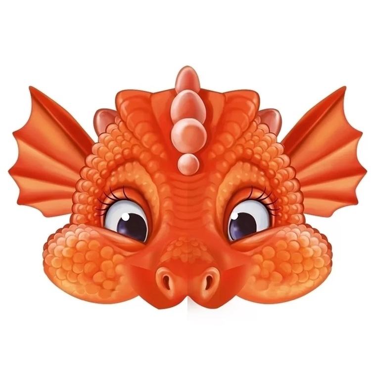 Маска в виде дракона для детских утренников в детском саду, постановок и выступлений в школе. Маска поможет ребенку примерить на себя роль дракончика без полного перевоплощения в костюм.