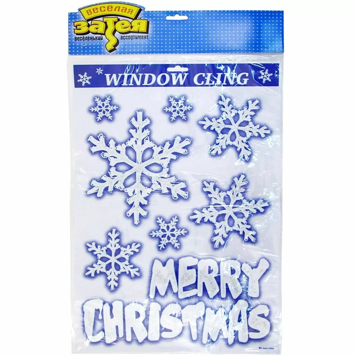 Большой лист с новогодними наклейками - снежинками и надписью Merry Christmas! Расклейте снежинки на стеклах - создайте новогоднее н астроение, как в детстве!