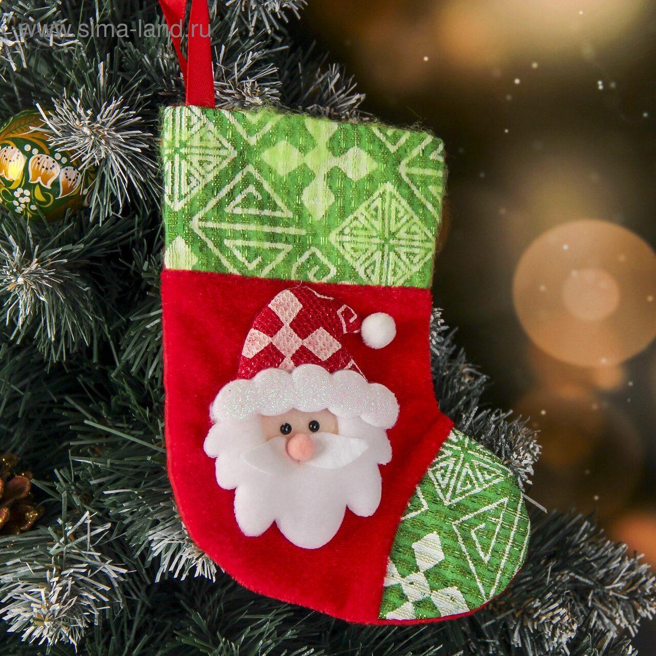 Носок для подарков "Ночь перед Рождеством" 13*17,5 см, дед мороз зелёный