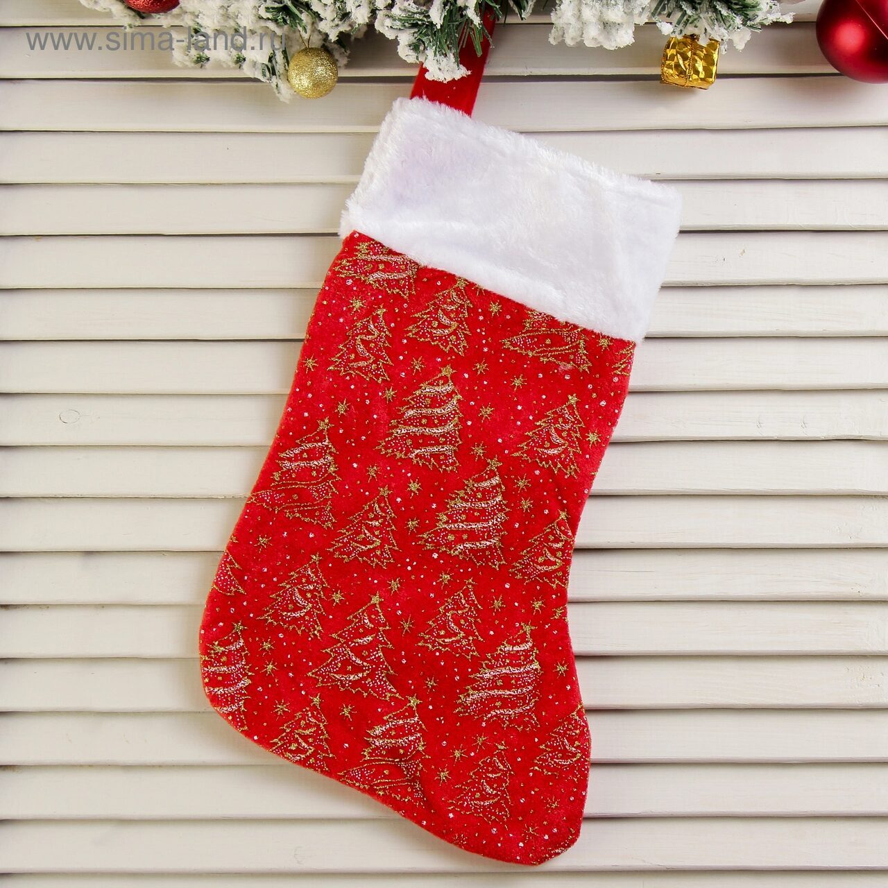 Носок для подарков "Звёздная пыль" красный 17*35 см
