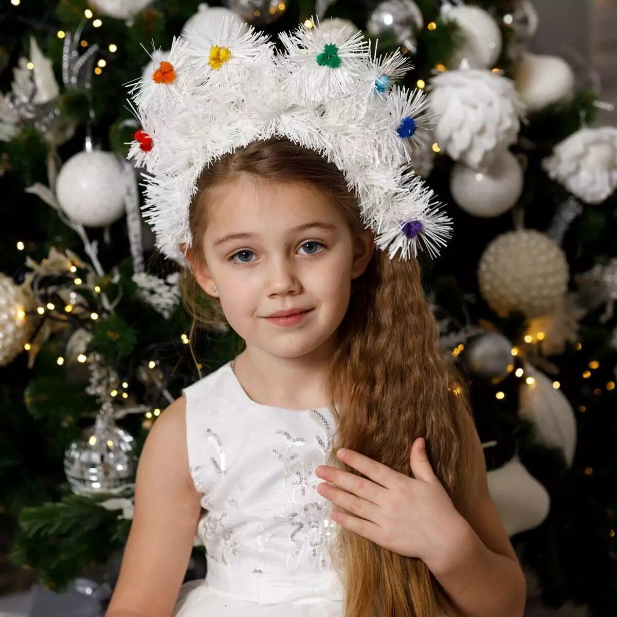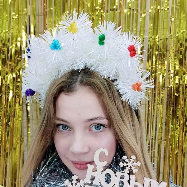 Ободок Елочные игрушки мишура белая