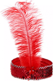 Ободок с пером, Варьете, Красный, с блестками, 1 шт.
