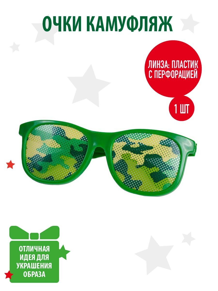 Очки из коллекции Камуфляж с перфорированными линзами. Очки выполнены из пластика и отлично могут замаскировать участников праздника !