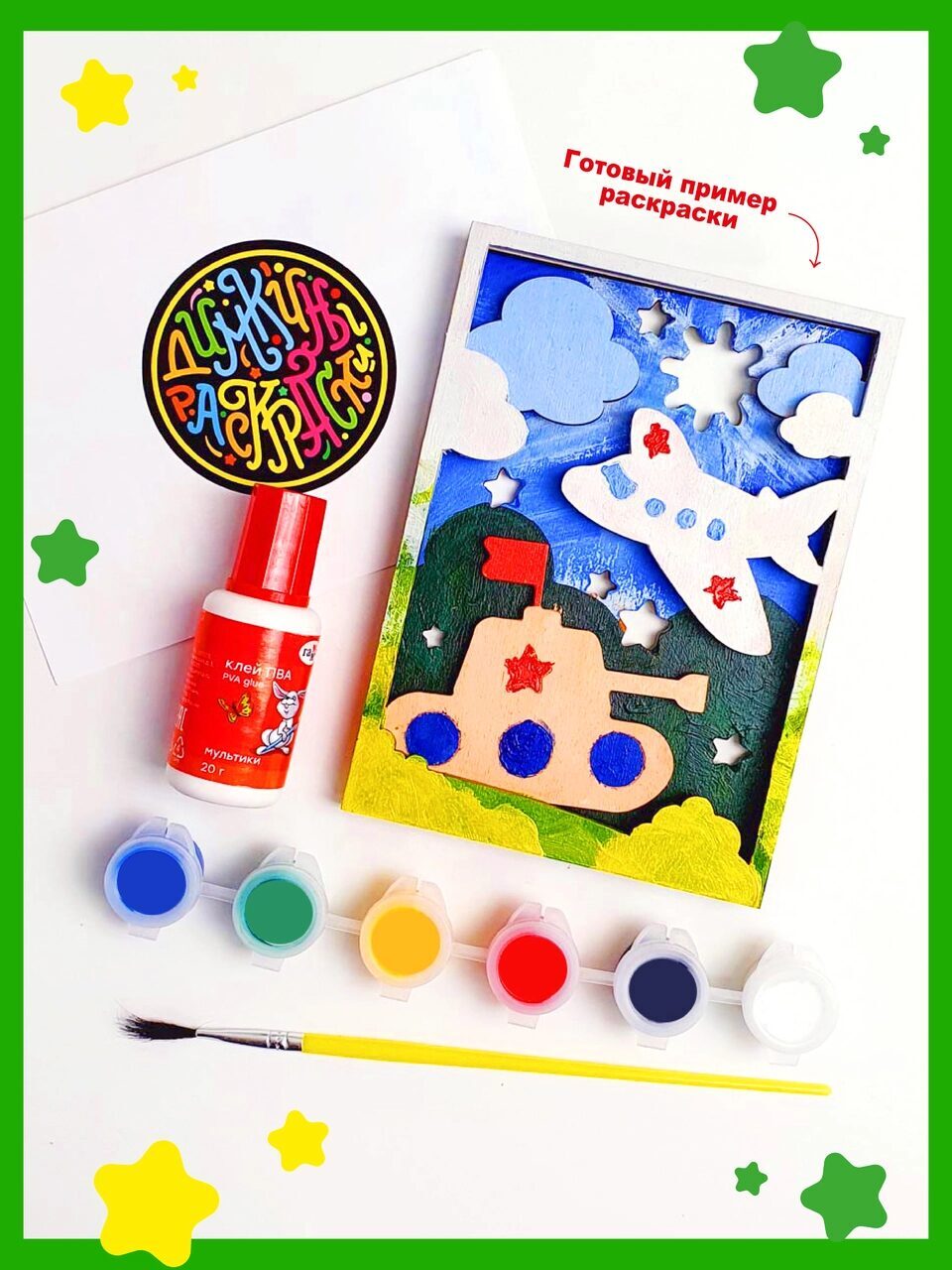 Этот творческий набор - прекрасный выбор для мальчиков от 4 лет и старше, которые любят рисовать и создавать свои собственные произведения искусства. В комплекте вы найдете все необходимое для создания уникальной акриловой рисованной открытки - летающий самолет и танк.