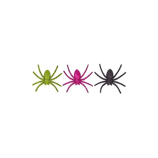 Гламурные глиттерные пауки цвета киви, фуксии и черные для празднования Хэллоуина. Размер каждого паука - 8 см, в упаковке 6 штук.