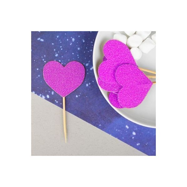 Пики для канапе - неотъемлемая часть праздничного фуршета. Романтичный дизайн пик "Сердце" в розовом цвете подчеркнет элегантность праздничного оформления стола. А сияние глиттера добавит лоска мероприятию. Набор: 6 шт. Размер: 8 см. Состав: бумага, бамбуковые палочки.