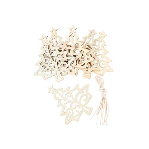 Игрушка деревянная на елку. Подвески Елочки деревянные, 6 штук
