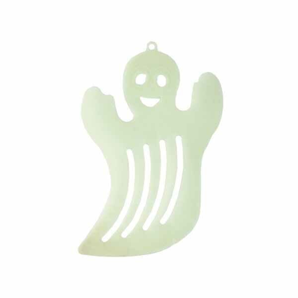 Забавное привидение сделано из пластика с добавлением люминофора, светится в темноте после кратковременного пребывания при освещении. Размер 21х32см.
