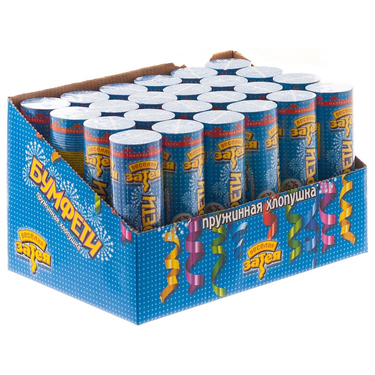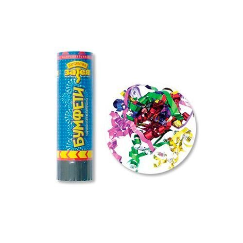 Устройство, аналог пневматической или пиротехнической хлопушки, абсолютно безопасное (работает от пружинки), предназначено для использования в помещении и на улице, дальность выстрела 2-3 м. Наполнитель: фольгированный серпантин.