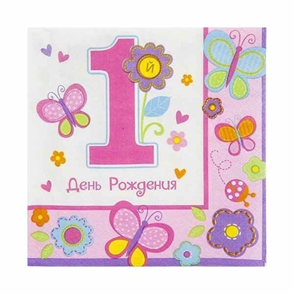 Цветы и сердца, божьи коровки, и, конечно, бабочки. Вашей красавице уже 1 год! В упаковке 16 салфеток размером 33*33 см для празднования годовасия!