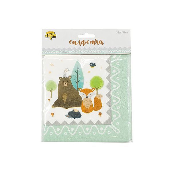 Лесные жители – лисичка и ежик, заяц и белочка, и конечно, медведь собрались на опушке, чтобы устроить настоящий праздник всем-всем-всем! В упаковке 12 двухслойных салфеток размером 33 см.