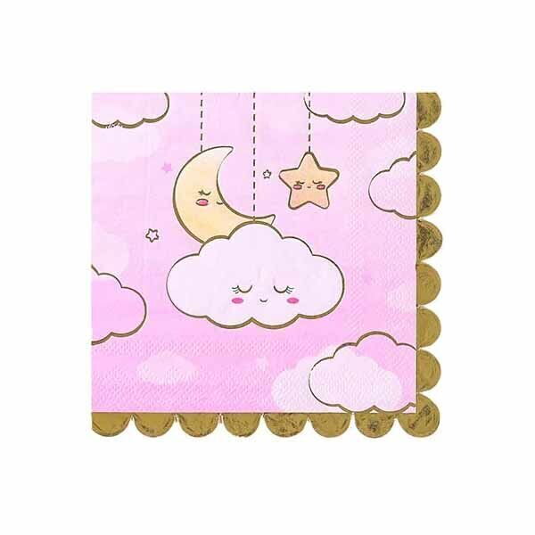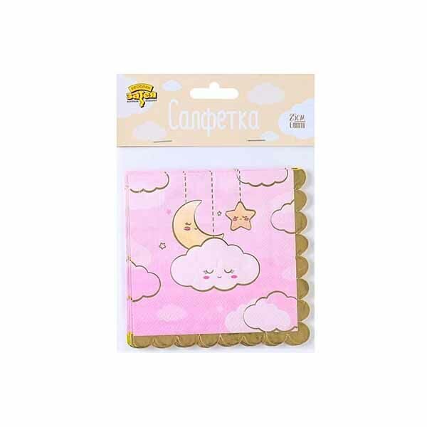 Спящие облака и звёзды, нежно хранящие самые светлые мечты и грёзы малышей! Мягкие оттенки розовой ванили и небесно-голубого, подчеркнутые тонкими золотыми нитями. В упаковке 6 розовых салфеток с золотой каймой, размер салфеток 25см.