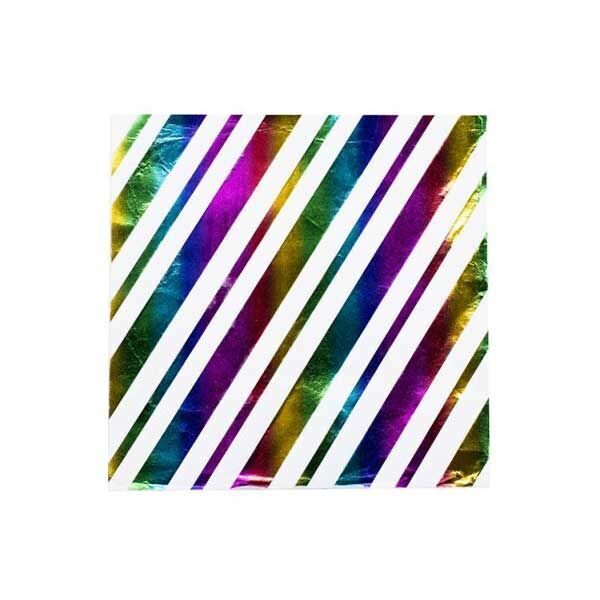 Блестящая градиентная посуда и аксессуары, переливающиеся всеми цветами радуги, не останутся не замеченными ни на одной вечеринке! В упаковке 6 бумажных салфеток с фольгированным нанесением hot stamp. Размер салфеток 33х33см.