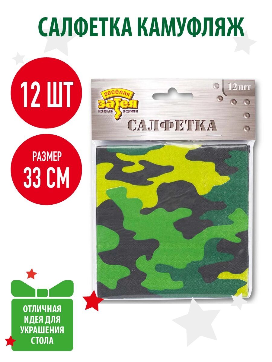 Для самых брутальных вечеринок, празднования дней разных родов войск, 23 февраля и армейских вечеринок. В упаковке 12 бумажных салфе ток размером 33*33 см.
