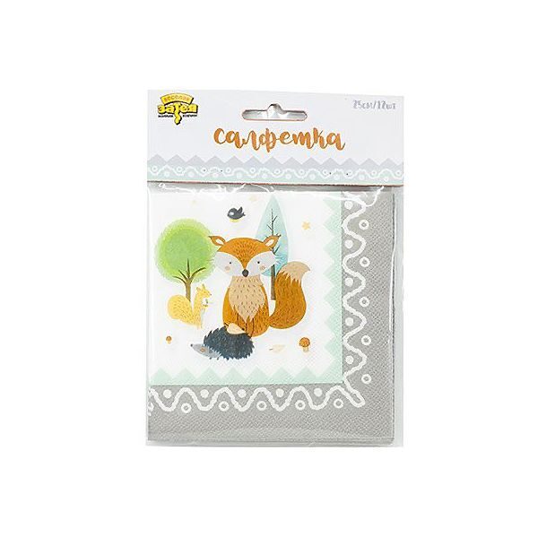 Лесные жители – лисичка и ежик, заяц и белочка, и конечно, медведь собрались на опушке, чтобы устроить настоящий праздник всем-всем-всем! В упаковке 12 двухслойных салфеток размером 25 см.