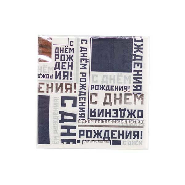 Индиго и сталь – два холодных, благородных оттенка, идеальных для празднования Дня рождения настоящего мужчины! В дополнении к дизайну – печатные буквы, гексаформы, прямые линии. В упаковке 6 двухслойных салфеток размером 25х25 см.