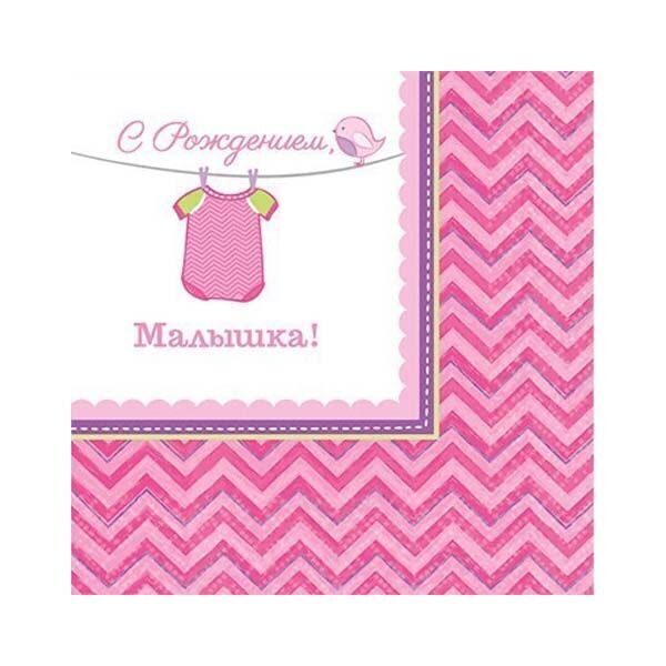 Розовые платьица и боди, чепчики и носочки на бельевой веревке. С коллекцией Любимая Дочка вы можете отметить как встречу новорожденной, так и годовасие. В упаковке 16 бумажных салфеток размером 25*25 см с канвой в шевронах.