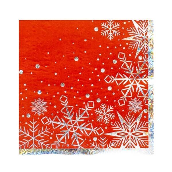 Волшебный новый год и рождество – в кружении искристых снежинок и роскоши алого цвета. Пусть все желания сбудутся! В упаковке 6 бумажных салфеток с голографическими снежинками, размер салфеток 25х25см.