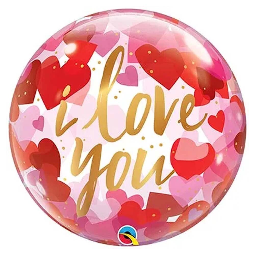 Круглый прозрачный шар из эластичного пластика с надписью I love you. Надувается гелием до полного исчезновения складок с использованием стандартного оборудования (насадкой для латексных шаров).