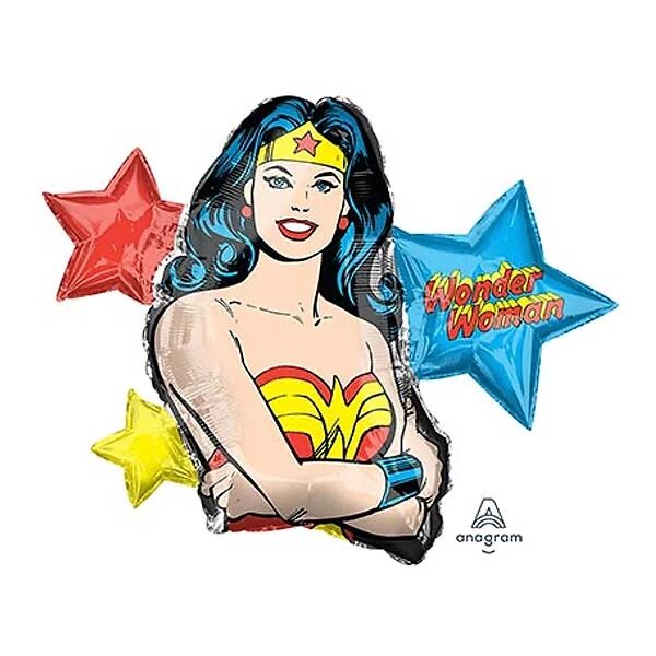 Сложная, объемная фигура в форме известной героини одноимённого фильма Чудо-женщина. Тонкая миларовая (фольга на полиэтиленовой основе) пленка позволяет шарам не сдуваться от недели до одного месяца.
