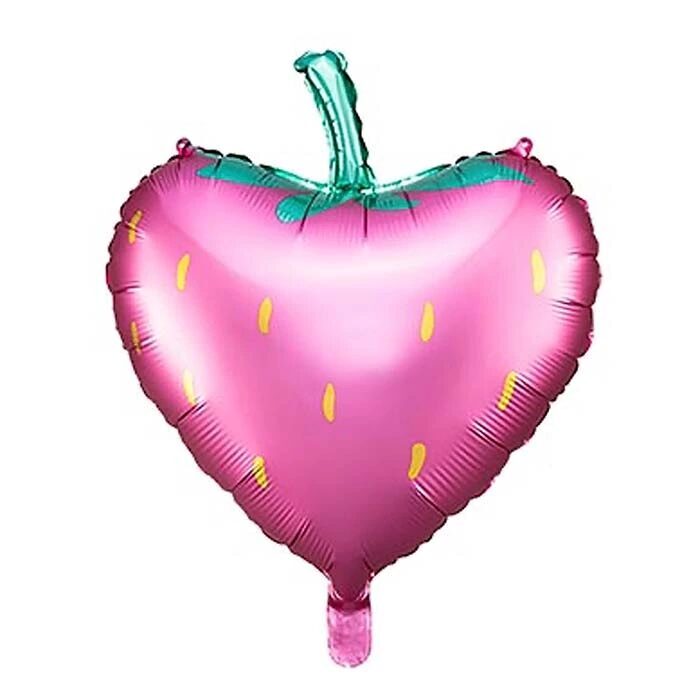 Матовый фольгированный шар Клубника с золотым принтом, может надуваться как гелием, так и воздухом. В верхней части шара имеются специальные отверстия для подвешивания, при надувании воздухом. Размер 42 x 45 см (16,5 x 17,5'').