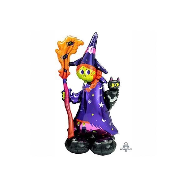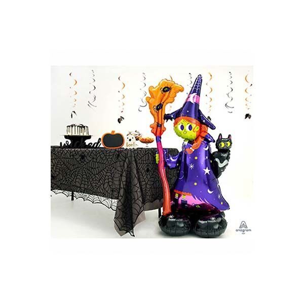 Ростовая фольгированная композиция для оформления Хэллоуина в форме ведьмы с черным котом на плече. Эффектных вам фото!