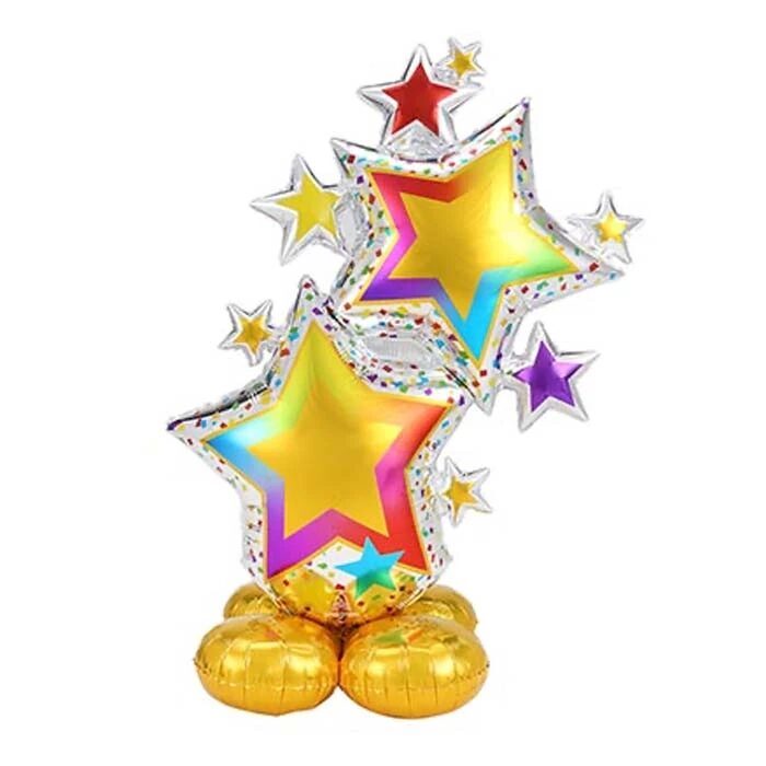 Уникальная напольная композиция в форме каскада ярких звезд. Большая объемная фольгированная фигура , которую Вы можете использовать как самостоятельную декорацию для любого праздника. Данный шар надувается ВОЗДУХОМ. Тонкая миларовая пленка (фольга на полиэтиленовой основе) позволяет шарам не сдуваться от недели до одного месяца.
