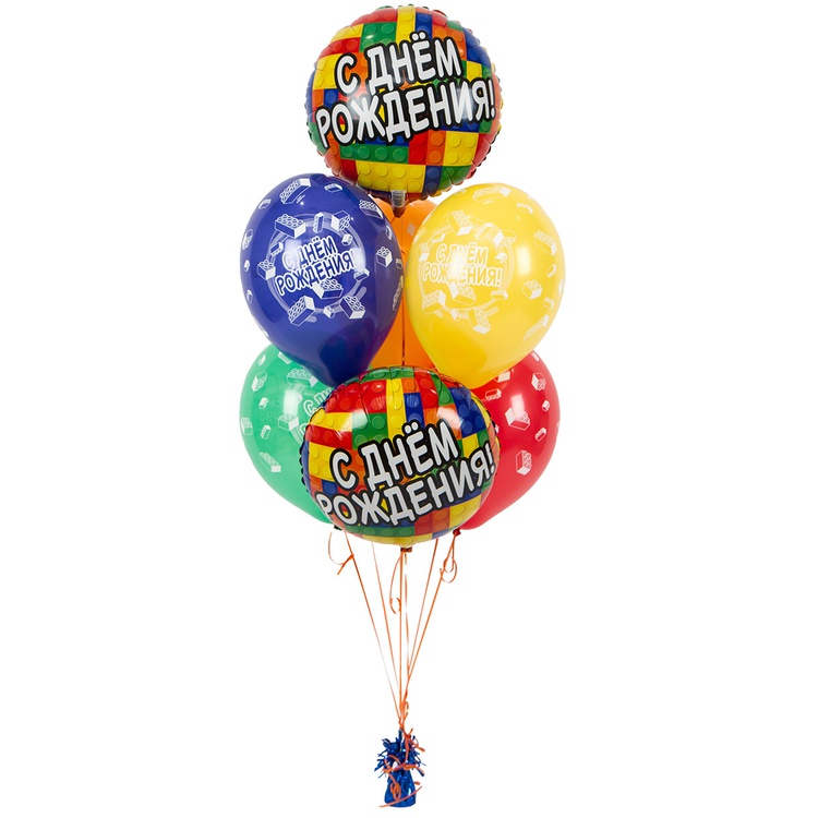 Круглый фольгированный шар с изображением разноцветных кубиков Лего и надписью С Днём Рождения продаётся в ненадутом виде. Для надува рекомендуется использовать гелий. Шар изготовлен из тонкой миларовой пленки (фольга на полиэтиленовой основе). Шар имеет встроенный клапан, что упрощает надувание.