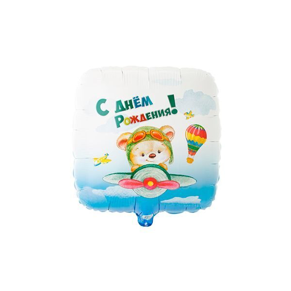 Шар квадрат "Мишка-пилот" 45 см