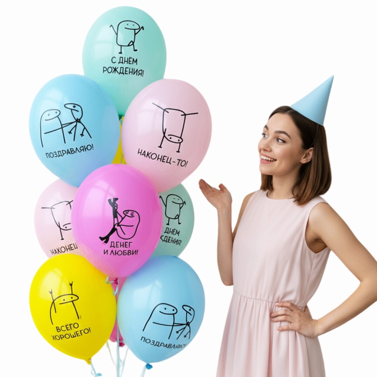 Встречайте прикольный набор воздушных шаров с человечками-мемами! Эти забавные рисунки подойдут для любой вечеринки, особенно если у кого-то сегодня день рождения или тематический праздник. Каждый латексный шарик — это яркое украшение для детской или взрослой фотозоны, которое точно запомнится всем гостям. Парень, девушка, друг, подруга или даже коллега – каждый найдет свой повод улыбнуться и пошутить над мемами. Разноцветные шары с прикольными мемами создадут стильное оформление и добавят ярких эмоций в атмосферу веселого др.