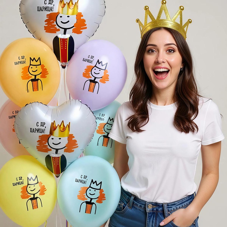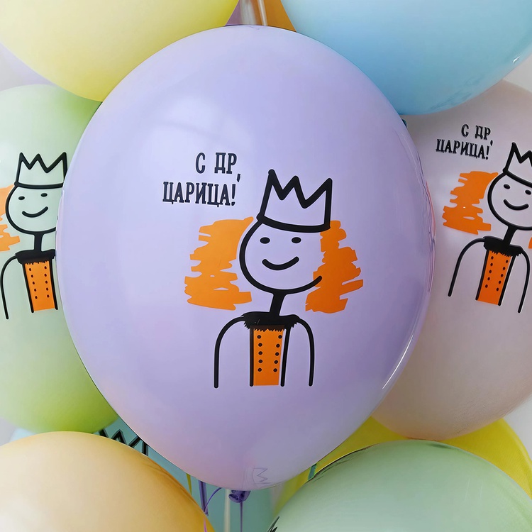 Этот шар — не просто украшение, а портал в королевство радости! На его пастельной поверхности восседает весёлый монарх с короной, словно приглашая именинницу почувствовать себя настоящей царицей. Фраза «С ДР, ЦАРИЦА!» искрится магией, как звёзды на ночном небе. Такой шар превратит любой праздник в королевский бал!