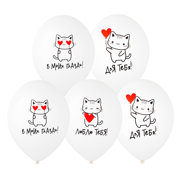 Высококачественный шар из натурального латекса. Белые шары пастель - матовый оттенок цвета. Шары с двухцветными, двухсторонними шелкографическими рисунками. Милые котики с сердечками и надписями: Для Тебя! Люблю Тебя! Воздушные шары изготавливаются из экологически безопасного 100%-ного натурального латекса. В окружающей среде разлагаются на безопасные компоненты примерно с той-же скоростью, как обычные листья деревьев. После использования лопнуть и утилизировать как бытовой отход.