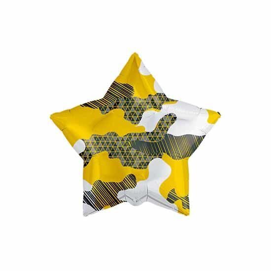 Фольгированный шар в форме звезды с камуфляжным рисунком продаётся в ненадутом виде. Рекомендуем надувать его гелием. Выполнен из миларовой пленки, благодаря чему шар летает несколько дней. Производство: Россия.