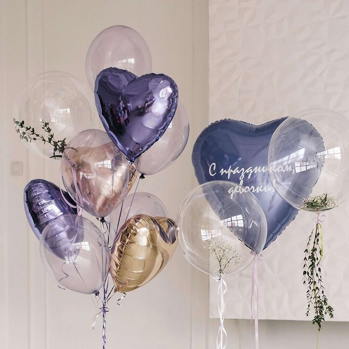 - Фонтан из 5 прозрачных шаров, 4 сердец