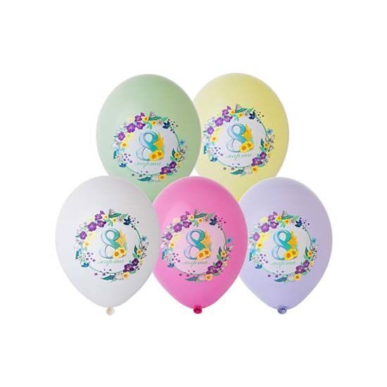 Эффектное поздравление с 8 Марта с нежным многоцветным рисунком. Такие шары отлично сочетаются в букете с фольгированным шаром К 18" РУС 8 МАРТА Цветы 1202-2754. Размер латексных шаров в надуве 35 см. Вы можете надуть их как воздухом при помощи ручного насоса, так и гелием.