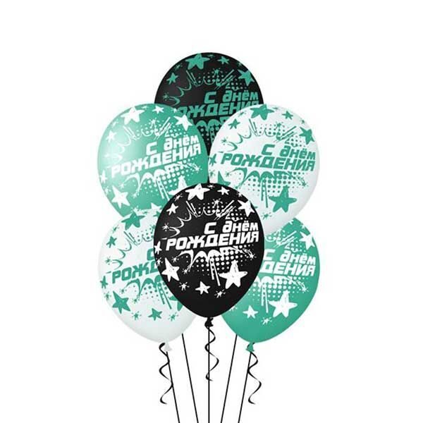 "Высококачественные воздушные шары из натурального латекса. Шары стильных цветов, с надписью С Днём рождения и звездочками - идеальное подойдут для поздравления именинника!