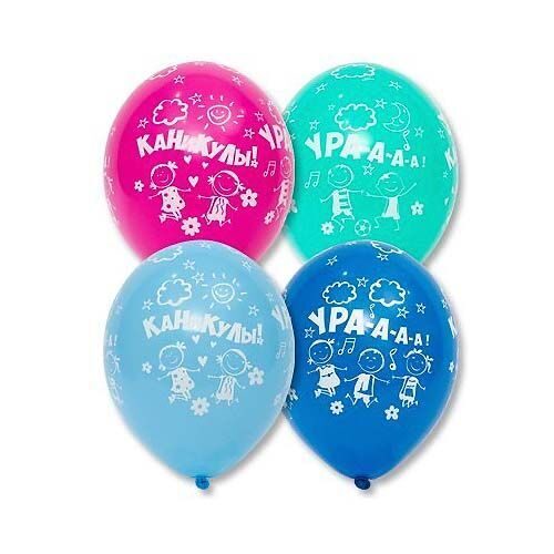 Начало каникул - отличный повод, чтобы это отпраздновать! В упаковке разноцветные шары с круговым рисунком и надписью Ура! каникулы! Размер шаров в надуве 35 см. Продаются ненадутыми. Вы можете надуть их как воздухом при помощи ручного насоса, так и гелием.