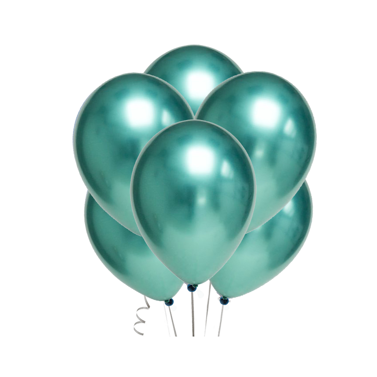 Качественные круглые латексные шары размером 11 дюймов (28 см в надуве). Тип хром - шар с зеркальным эффектом. Воздушные шарики зеленого цвета, металлик (блестящие).