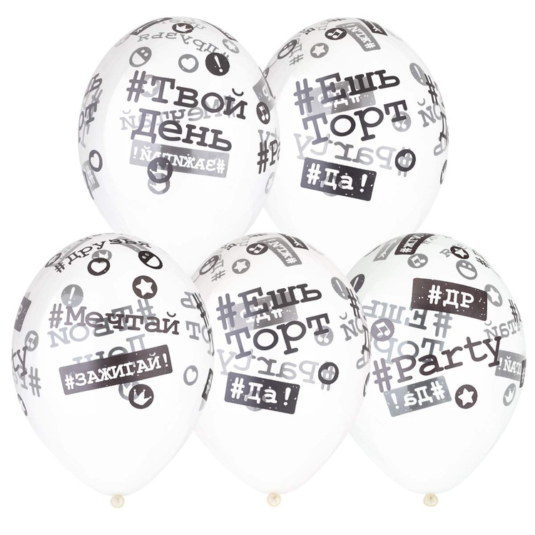 Высококачественный шар из натурального латекса, прозрачный кристалл. Шары с пятисторонним - круговая печать, шелкографическим рисунком - Хештеги. #Твой день, #Ешь торт, #ДР, #Зажигай, #Мечтай, #Party - модные надписи на больших шариках, однозначно, понравятся каждому.