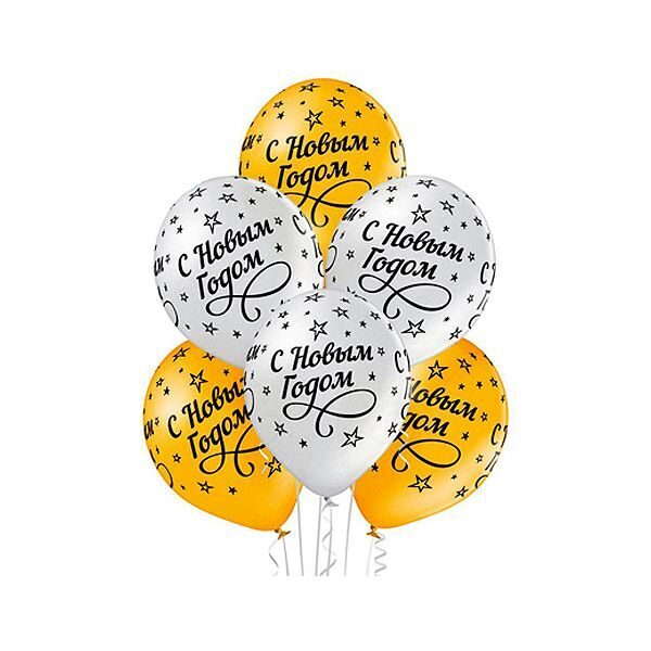 Высококачественный шар из натурального латекса. Ассорти из двух цветов - золотые и серебряные шары. Рисунок напечатан черной краской. Одного тип - металлик - шар с металлическим блеском. Шары с пятисторонним - круговая печать, шелкографическим рисунком С Новым Годом. Предназначен для розничной продажи воздушных шариков. Идеальный ассортимент для праздничных оформлений, т.к. при плетении из него гирлянд - рисунок будет очень хорошо виден.